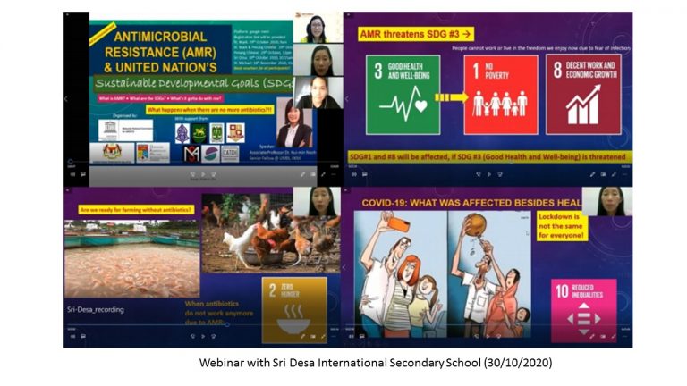 This program communicated the important message about the threat of antimicrobial resistance towards the achievement of UN’s SDGs to the students and senior citizens. After the webinar, the participants are more aware of the differences between bacterial and viral infections, the importance of antibiotics, and also gain an initial understanding and exposure to the UN’s SDGs. School teachers were very receptive of the program and look forward to similar and advanced webinars of the same topic next year. lmportantly, they also suggested to include topics covered in the webinar in the new high school curriculum for the next Malaysia Education Blueprint. lnterestingly, the senior citizen association members were highly receptive to the webinar, and participants asked many questions during the session. This shows the spirit of continuous learning in our senior citizens – something that we should learn from them and carry into the future.